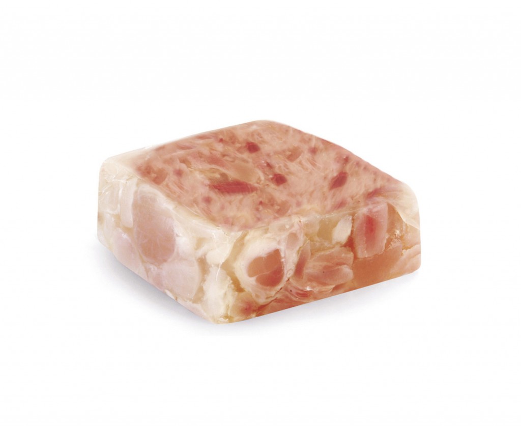 nervetti di vitello toelettati, tagliati, lasciati macerare con la salamoia, cotti a bagnomaria, immersi con la gelatina in uno stampo, raffreddati, confezionati sottovuoto in condizioni controllate, pastorizzati e nuovamente raffreddati