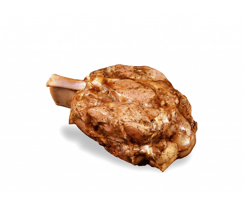 stinco di suino ottenuto da cosce di suino selezionate una a una, lasciato riposare in salamoia con verdure ed erbe aromatiche per aggiungere profumo e sapore, cotto a vapore, raffreddato, confezionato sottovuoto in condizioni controllate, pastorizzato e nuovamente raffreddato