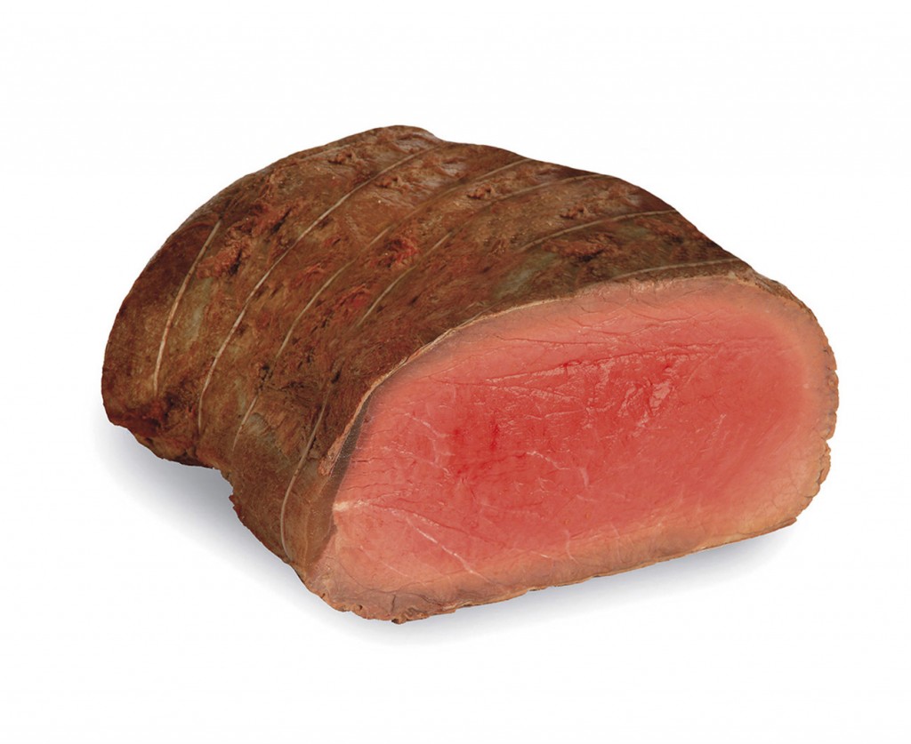 sottofesa di bovino toelettata, salata mediante assorbimento di salamoia, zangolata delicatamente, legata meccanicamente, cotta a vapore tipo roast-beef, raffreddata e confezionata sottovuoto in condizioni controllate